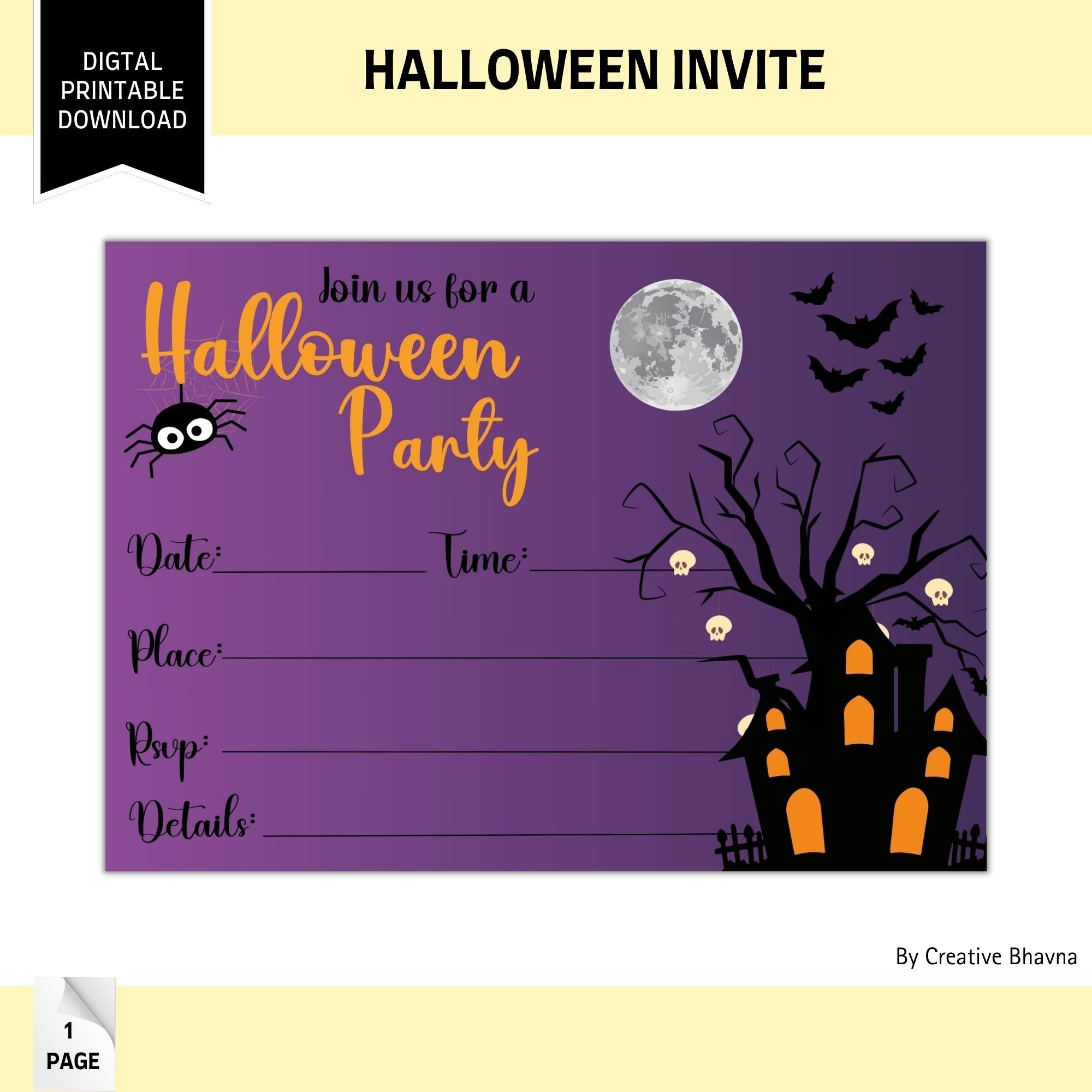 Halloween Printable Invitation Card Printable Card Halloween Etsy