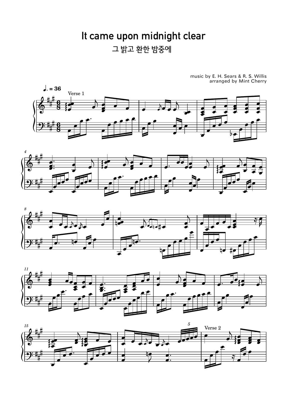 Christmas Carol It came upon midnight clear Sheet by Mint Cherry