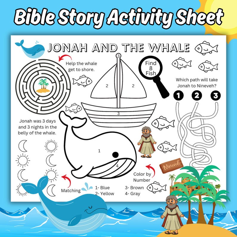 Jonah and the Whale Printable PDF bible by DorkyPrints on Etsy