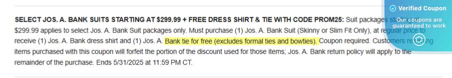 JoS A Bank Coupon Codes $30 Off Promo Code