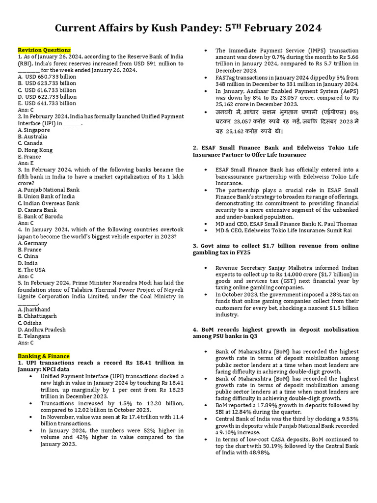 February 5 2024 Printable PDF PDF Reserve Bank Of India Banks