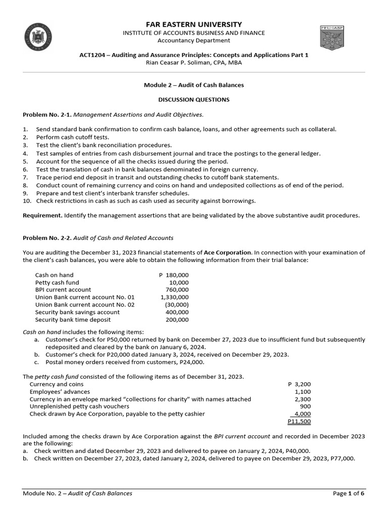 Audit of Cash (Printable Handout) Download Free PDF Banks Cheque
