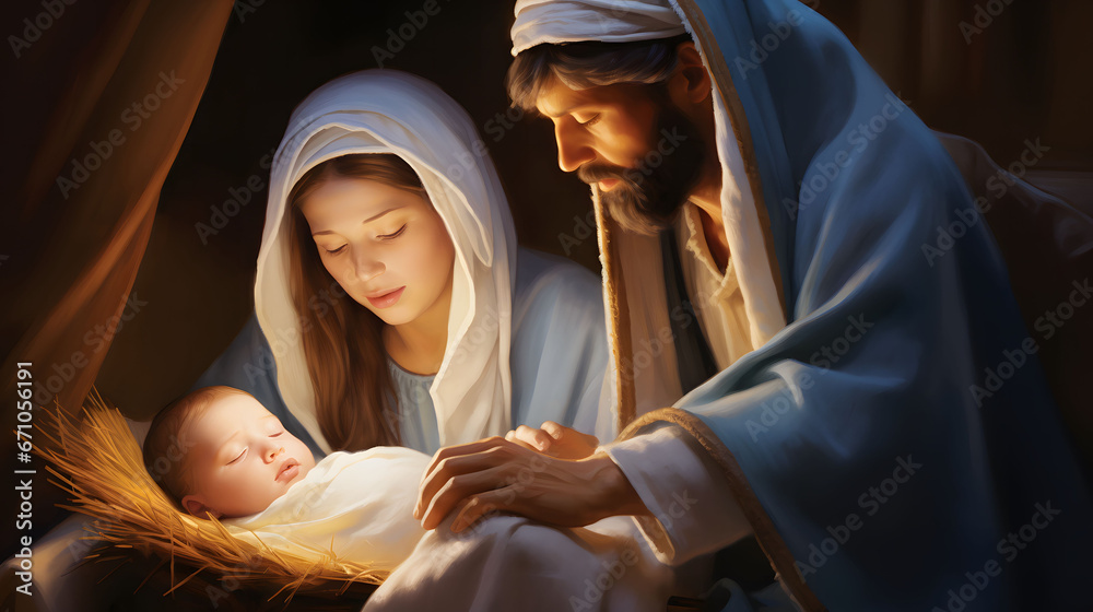 Portrait of Mary and Joseph with baby Jesus Nativity of Jesus