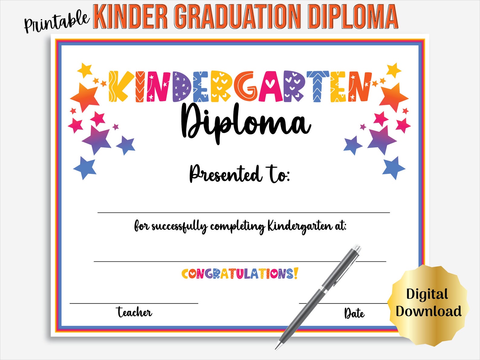 Kindergarten Graduation Diploma Instant Download Printable Diploma