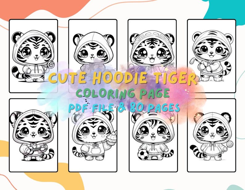 Cute Tiger Coloring Pages for Kids L Kawaii Tiger L Hoodie Tiger L Baby