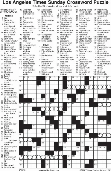 Los Angeles Times Sunday Crossword Puzzle Tribune Content Agency
