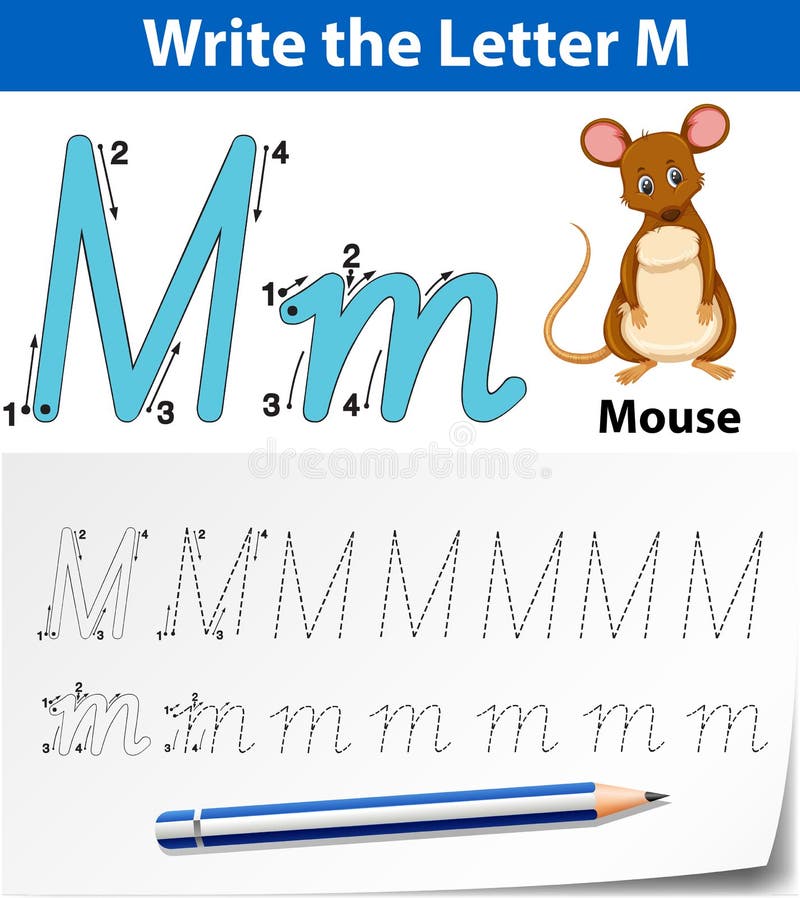 Tracing Alphabet Template for Letter M Stock Vector Illustration of