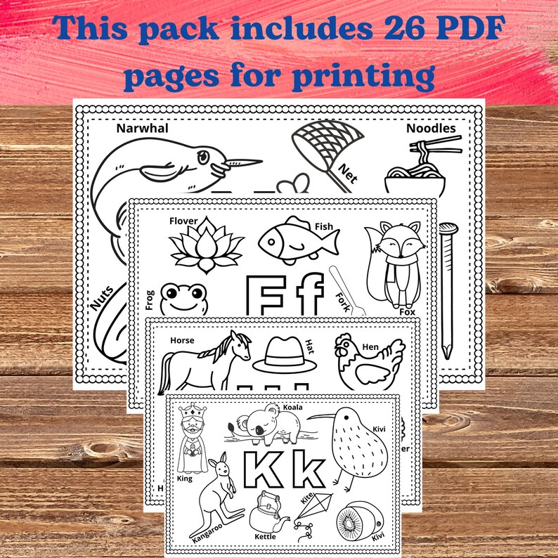 Alphabet Coloring Pages PDF Printable Kids Activity for Preschool
