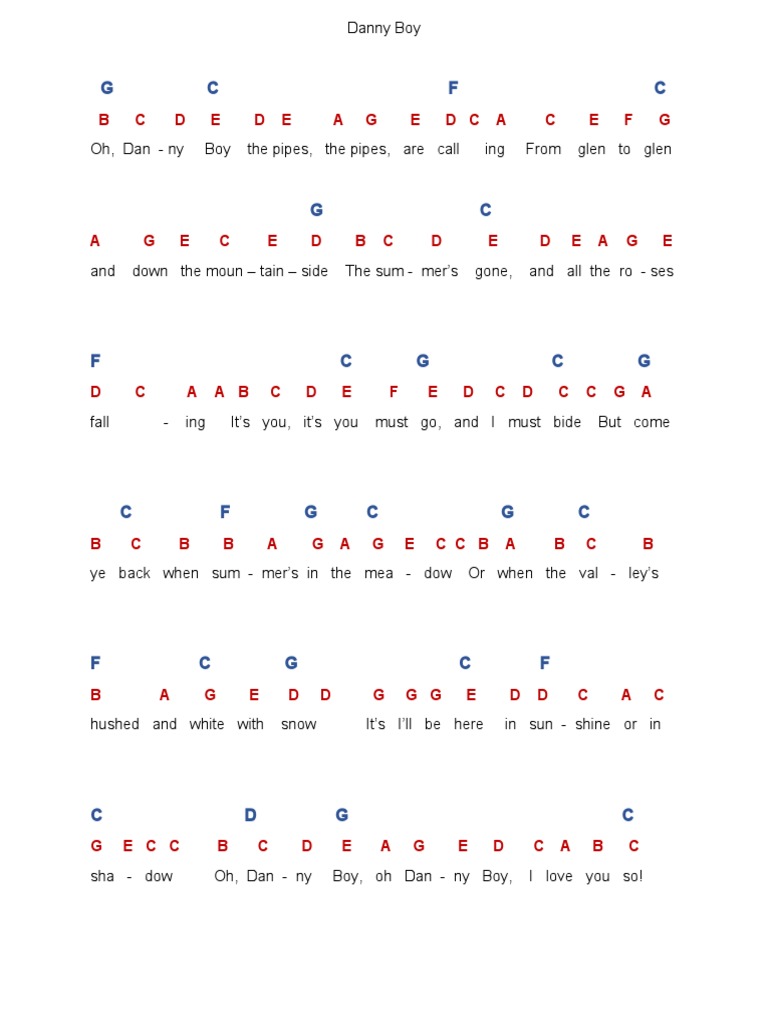 Traditional Song Danny Boy With Chords Tabs And Lyrics