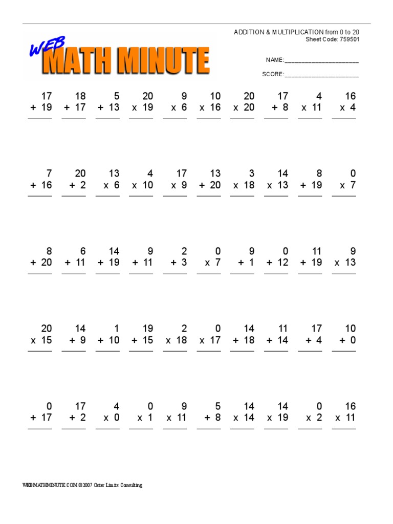 Mad Minute Printable Worksheets