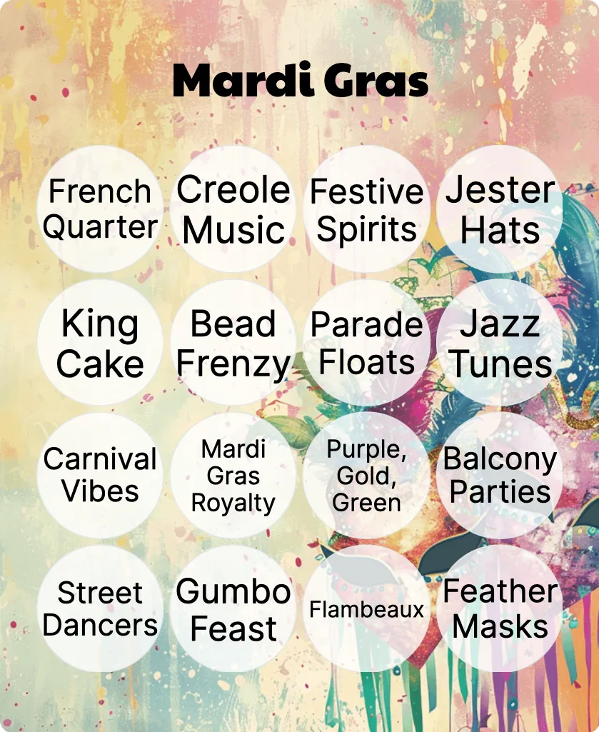 Mardi Gras Bingo: Printable Customizable Bingo Card Creator