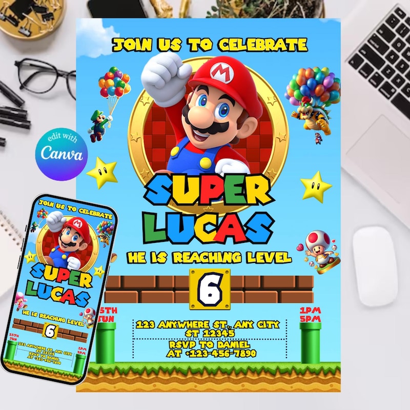 Mario Birthday Party Super Mario Invitation Printable Super Mario