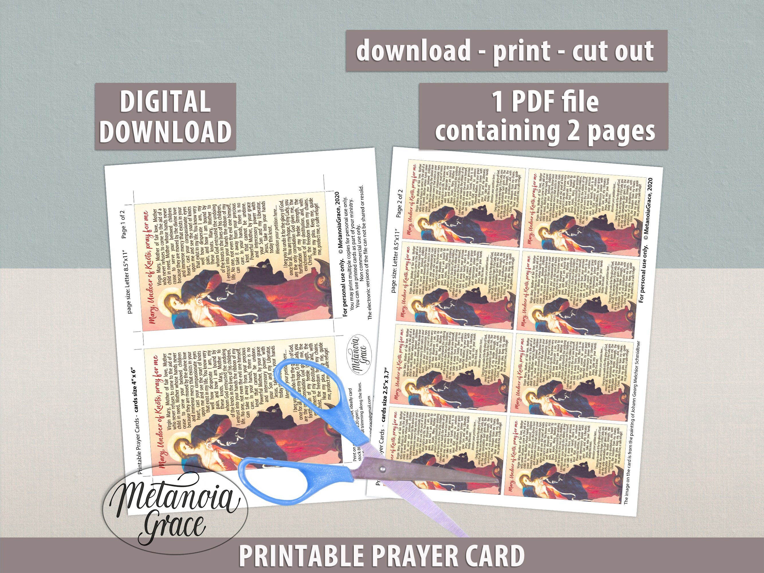 Mary Undoer of Knots Printable Prints and Prayer Cards Original Hand