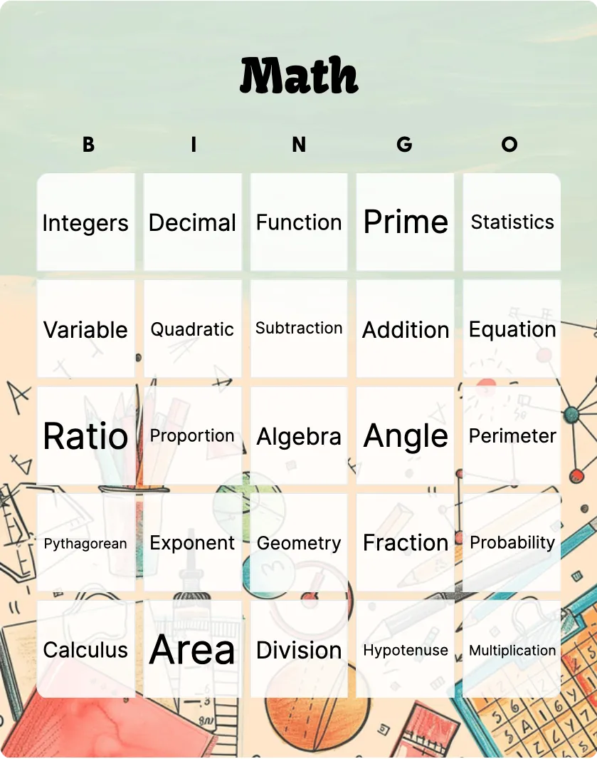 Free Math Bingo Printable Fun Activity Printables for Everyone
