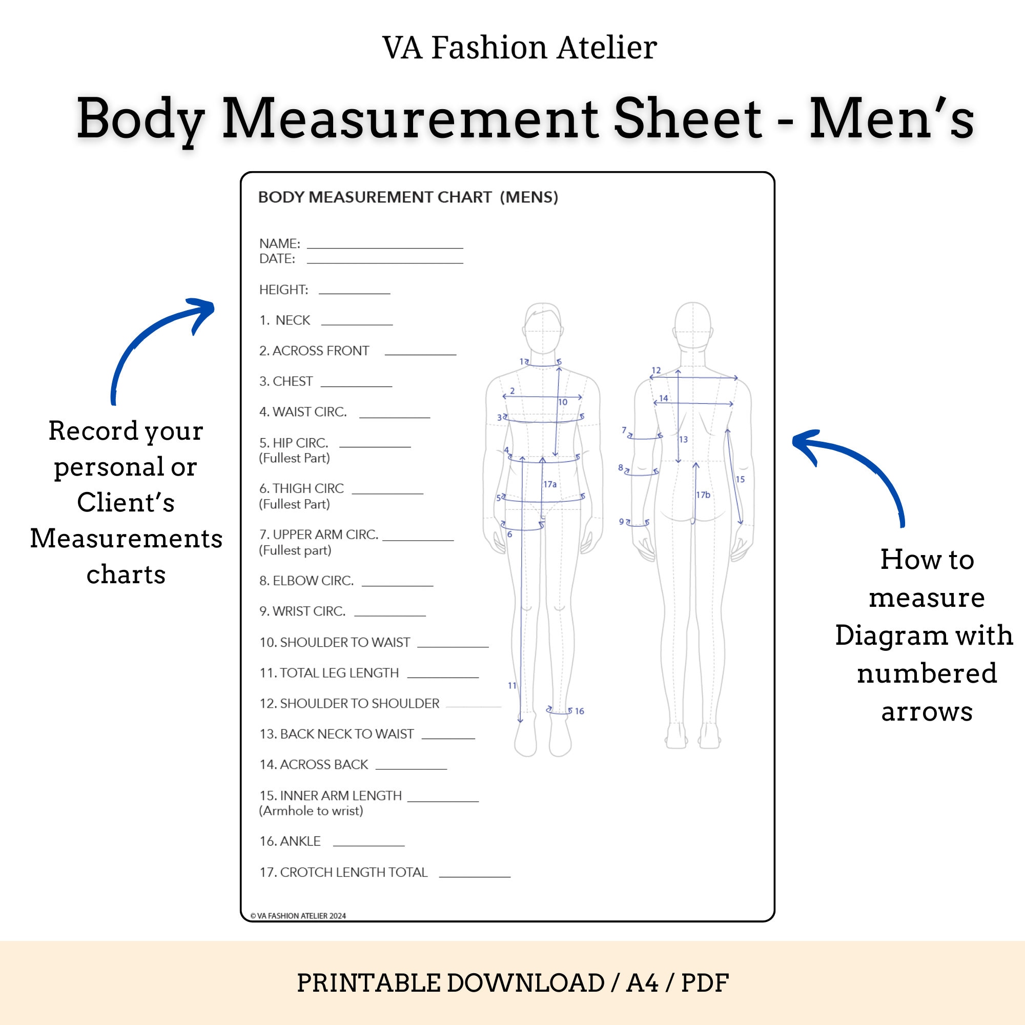 Men #39 s Body Measurement Sheet Male Fashion Sewing Measurement Sheet