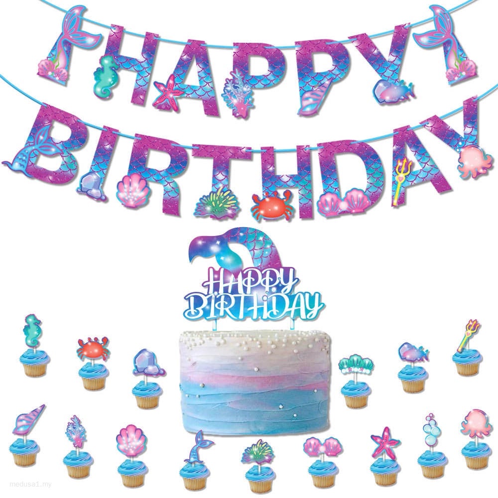 Mermaid Theme Birthday Party Decoration Happy Birthday Banner Cake