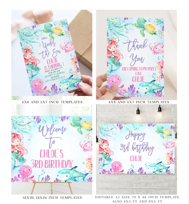 Editable mermaid happy birthday banner under the sea birthday banner