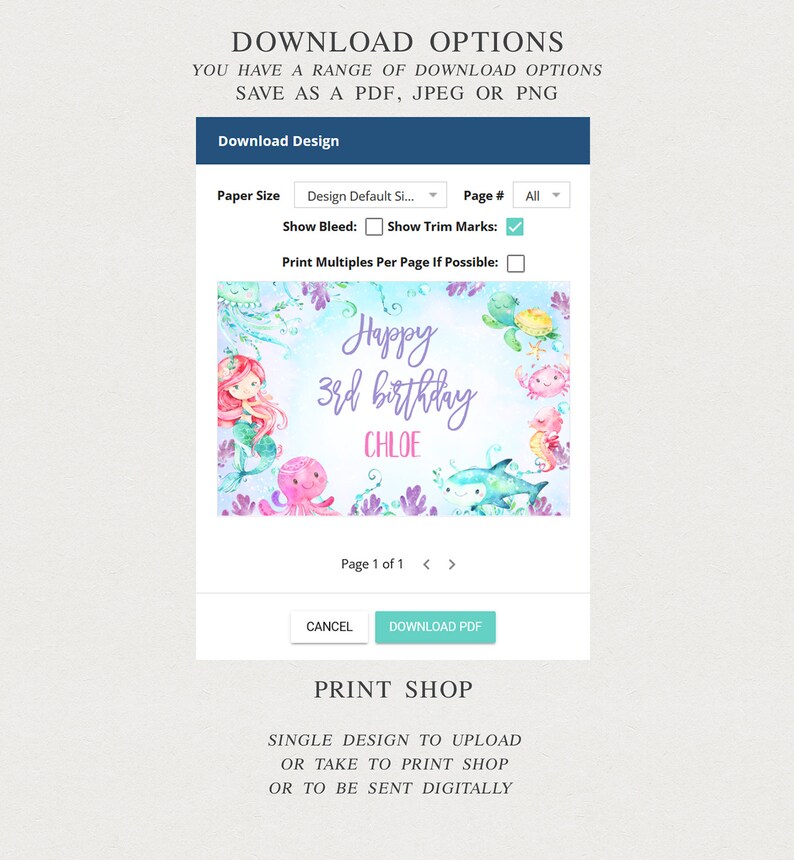 PLR Kids Mermaid Theme Birthday Banner plr printables store