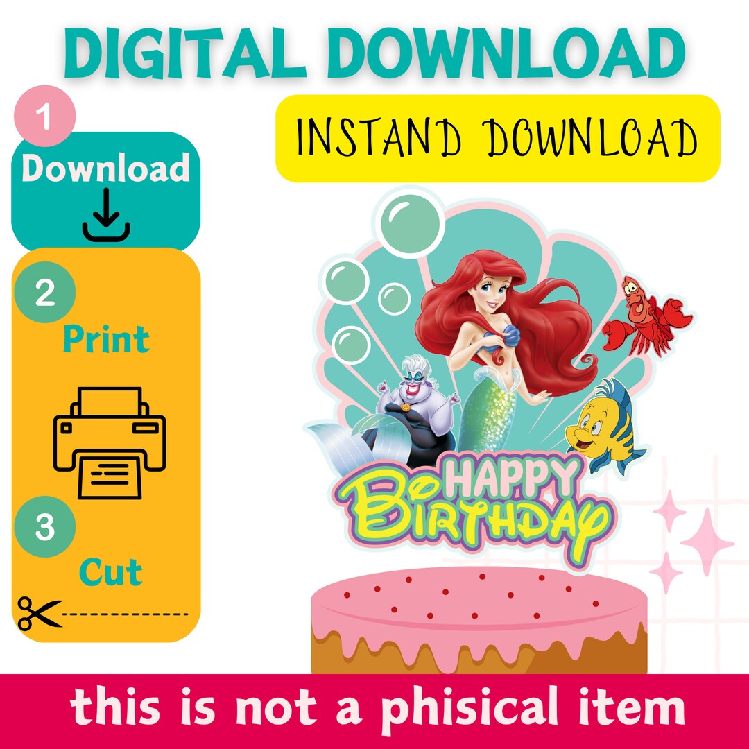 Printable Little Mermaid Cake Topper Digital Download Print Yourself Etsy