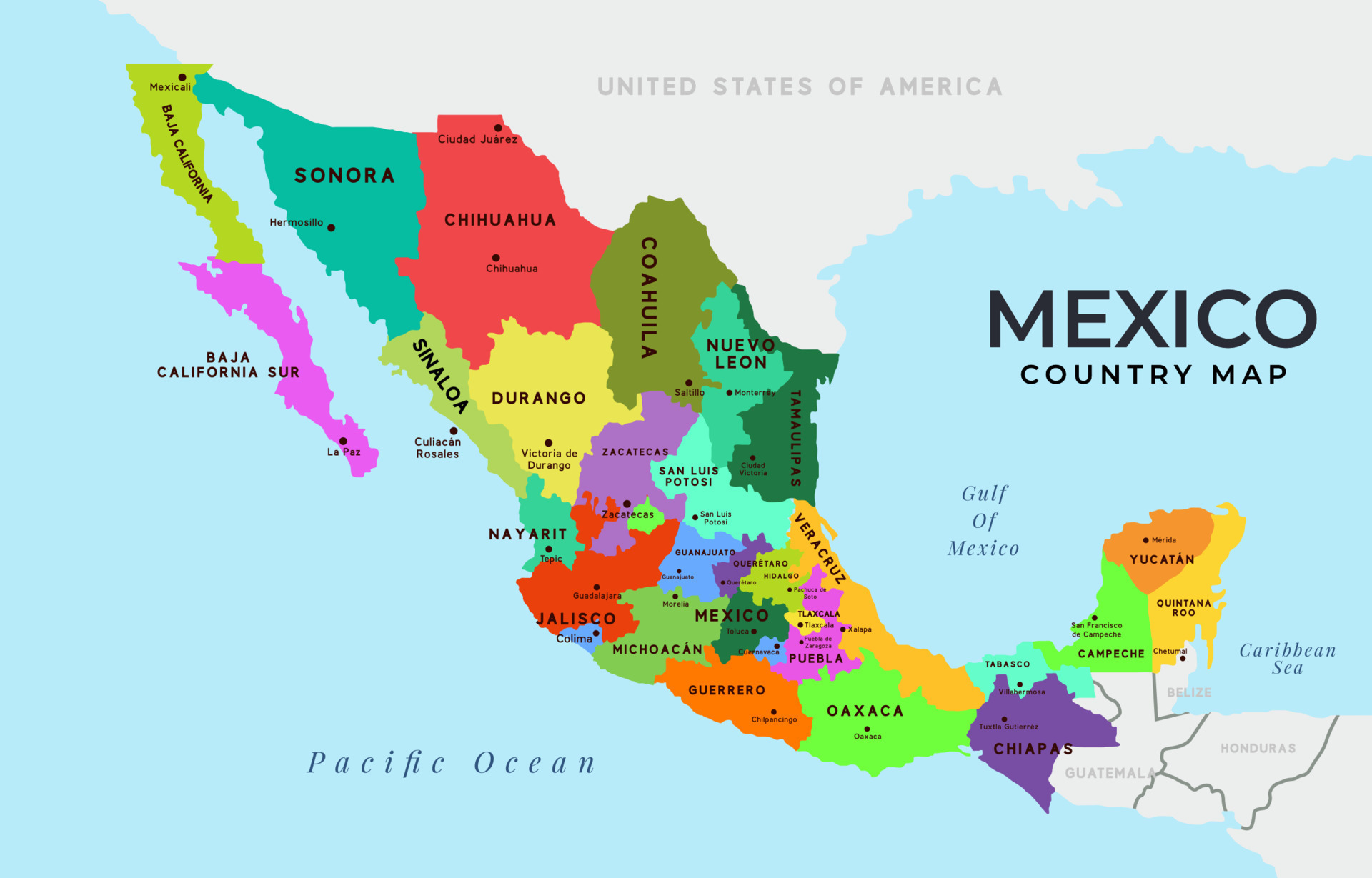 Country Map of Mexico 21175028 Vector Art at Vecteezy