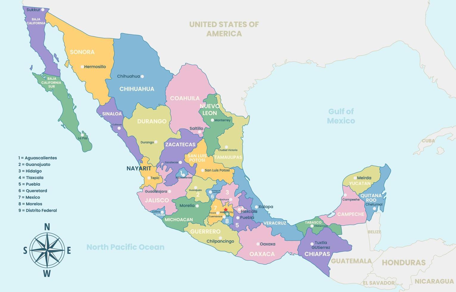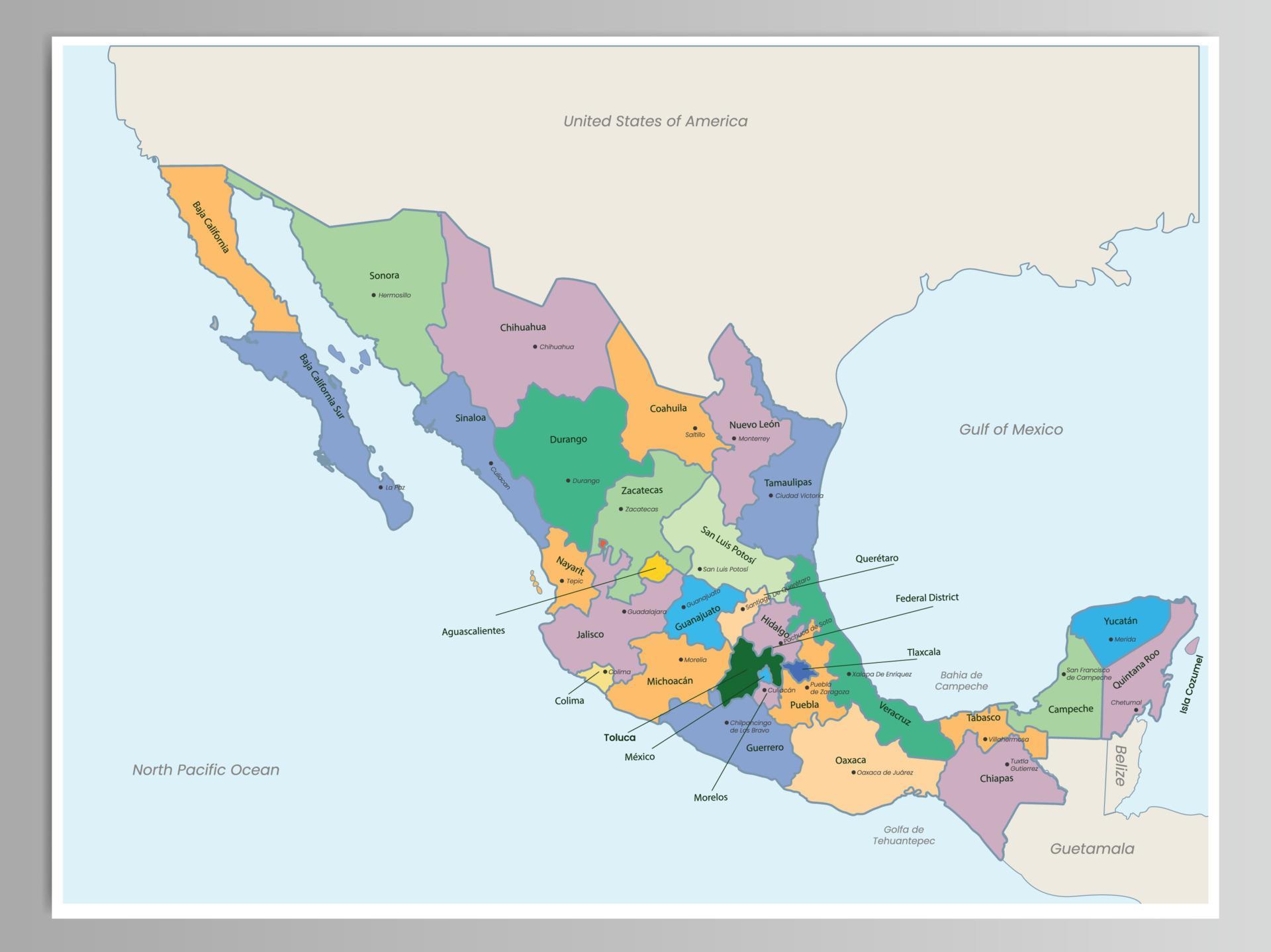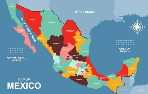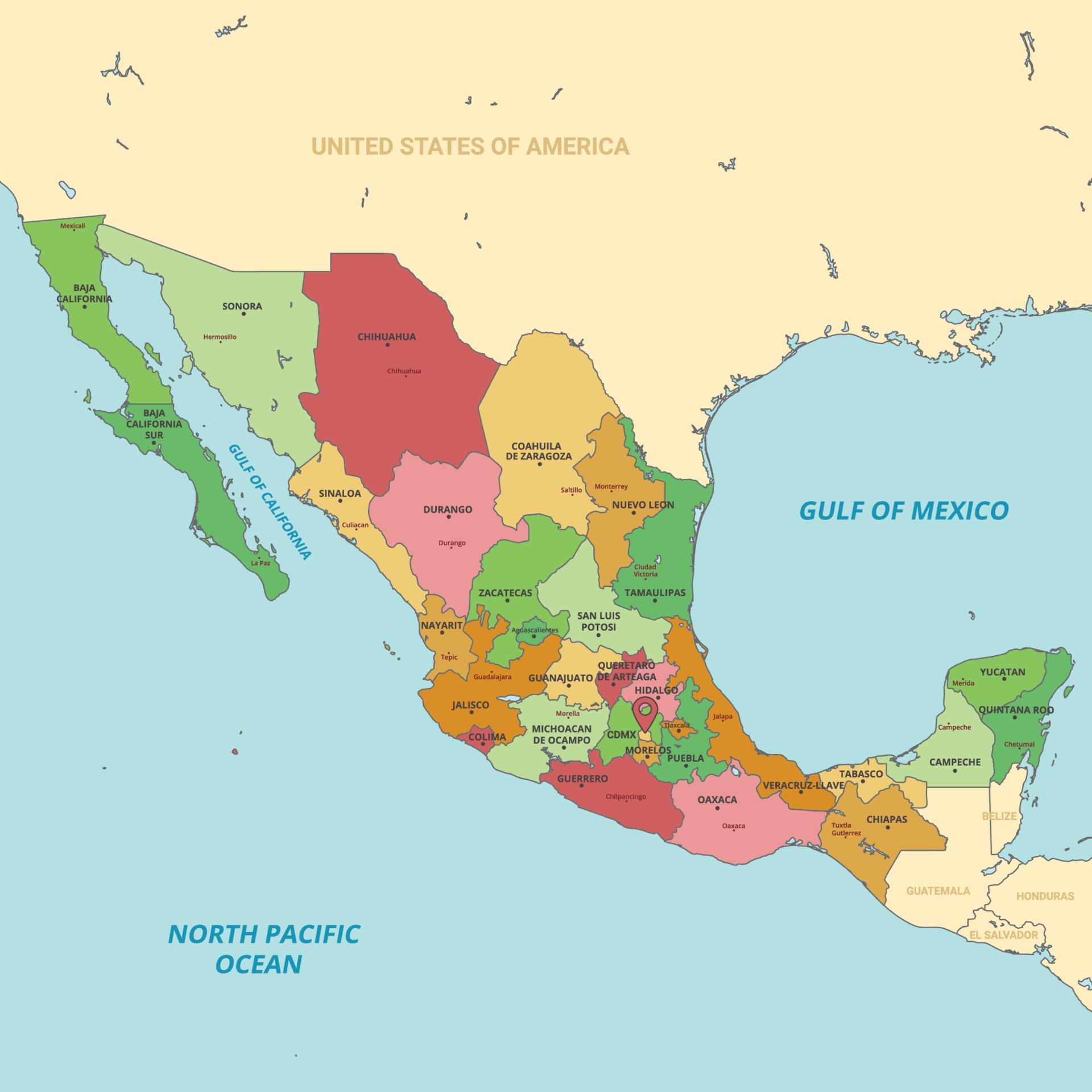 Colorful Mexico Map 20112767 Vector Art at Vecteezy