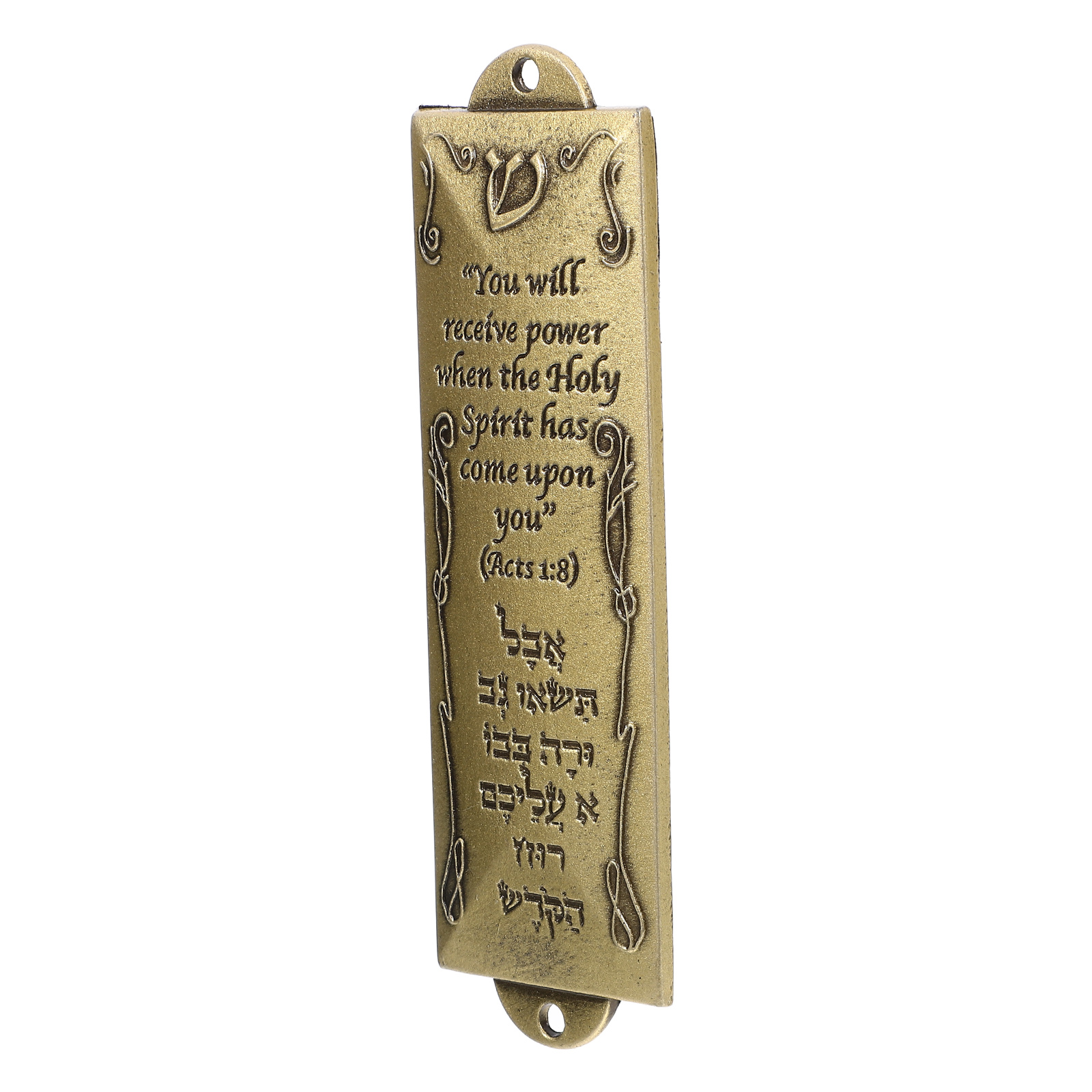 Brass Shema Mezuzah In English And Hebrew 3 Arches USA