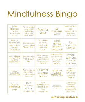 Learn to embrace mindfulness with mindfulness bingo Mindfullness