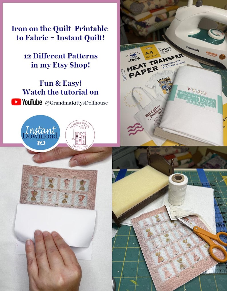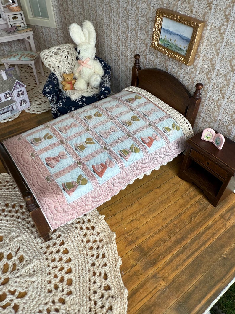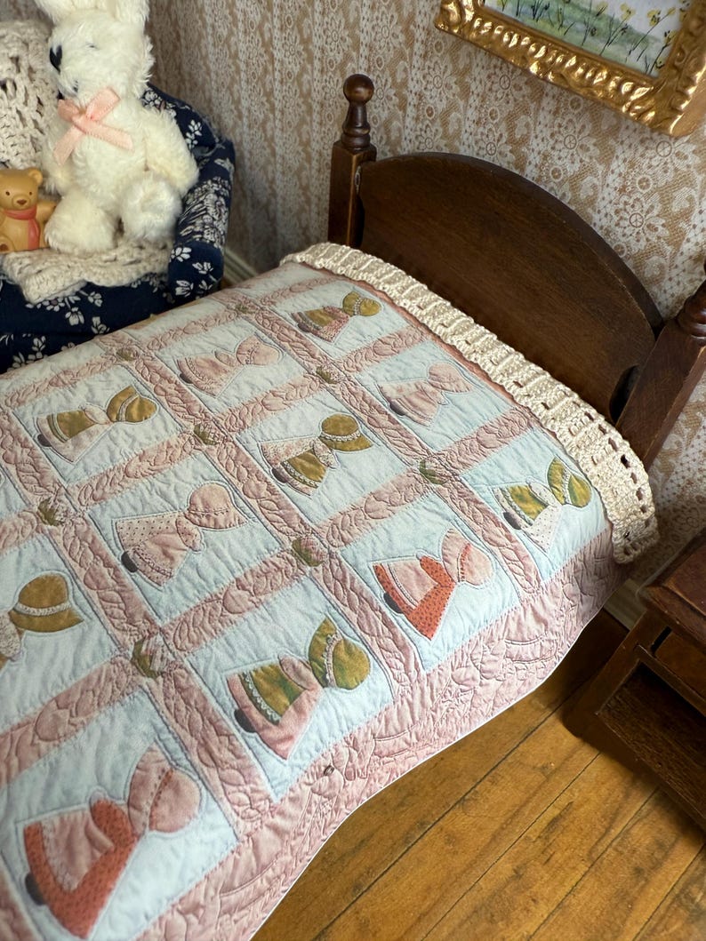 Miniature Dollhouse Holly Hobbie Quilt Pattern Small Bed Printable 1:12