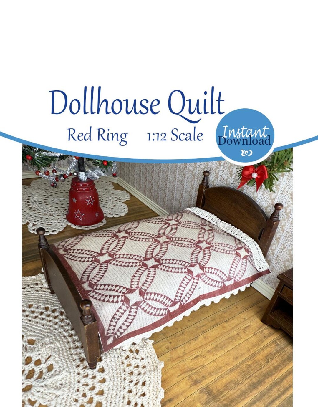 Miniature Dollhouse Christmas Ring Quilt Pattern Small Bed Printable 1: