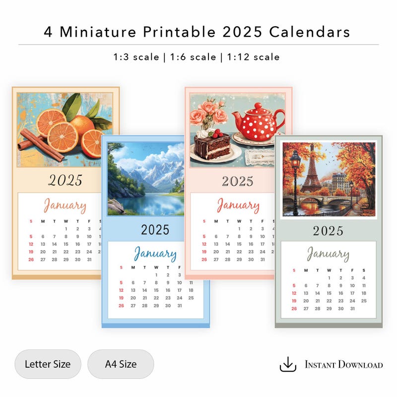 Printable Miniatures 1:6 Scale Barbie Dollhouse Calendars 2024 Decor 1/