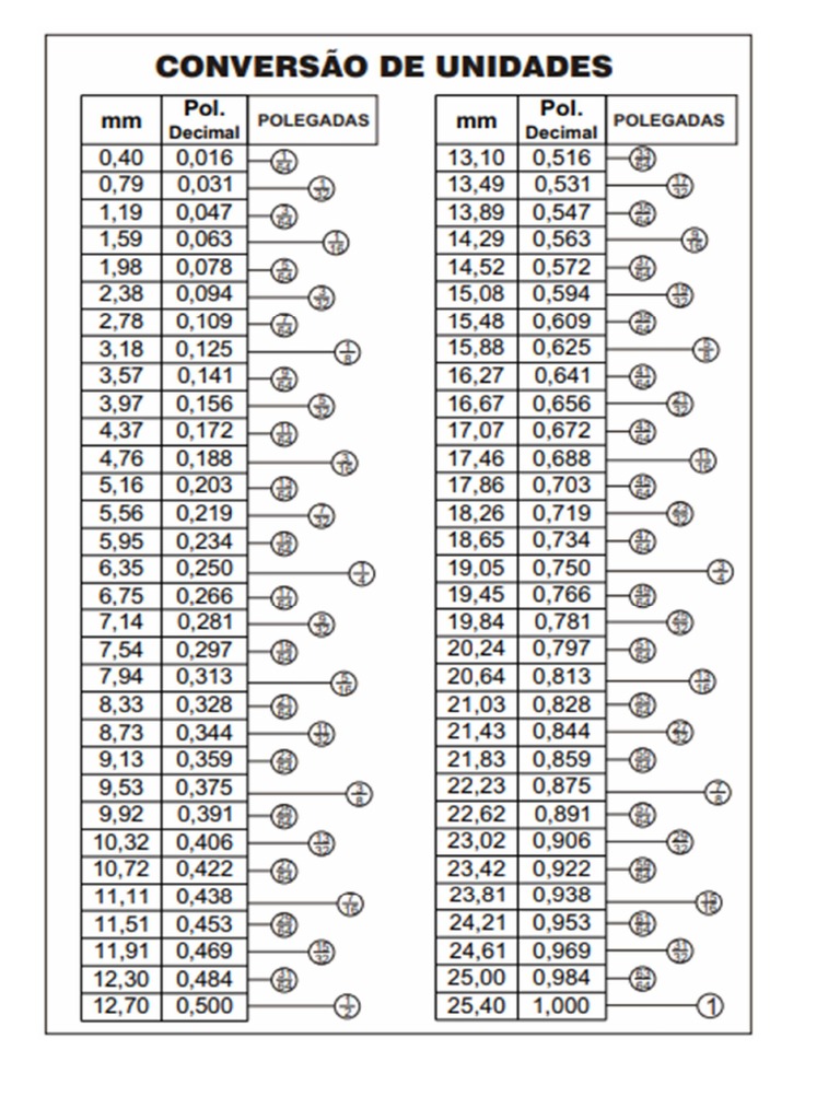 Tabela de Conversão de Unidades Mm para Pol PDF