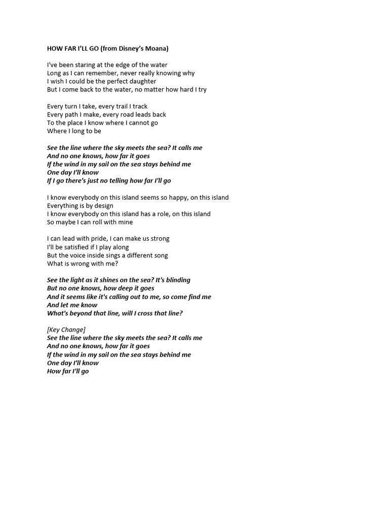 Here are some of the images for Moana How Far Ill Go Lyrics Printable that we found in our website database.