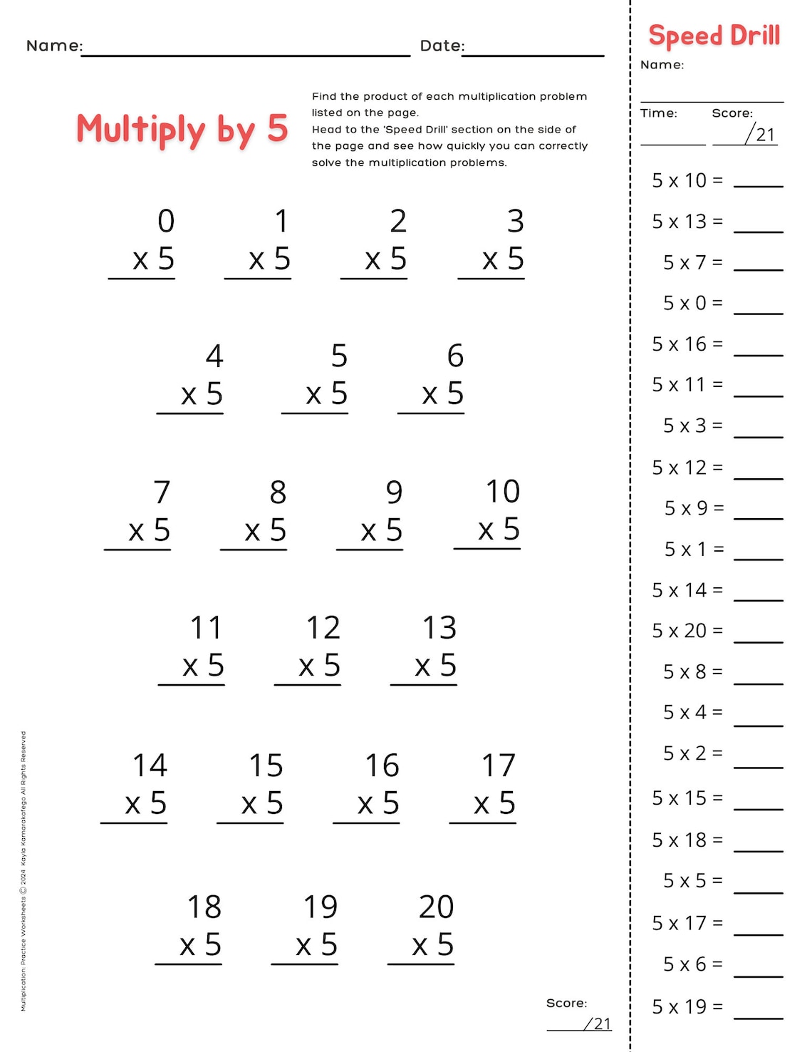 Multiplication Worksheets with Answer Key