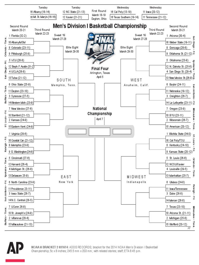 Ncaa Mens Basketball Tournament Bracket Printable