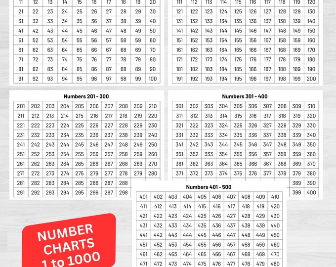 Numbers 1 1000 Hundreds Chart to 1000 (digital Printable) Etsy