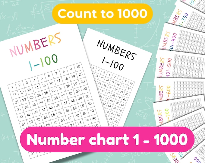 1 1000 Number Charts ( Digital Printable) by EducationalFinds TPT