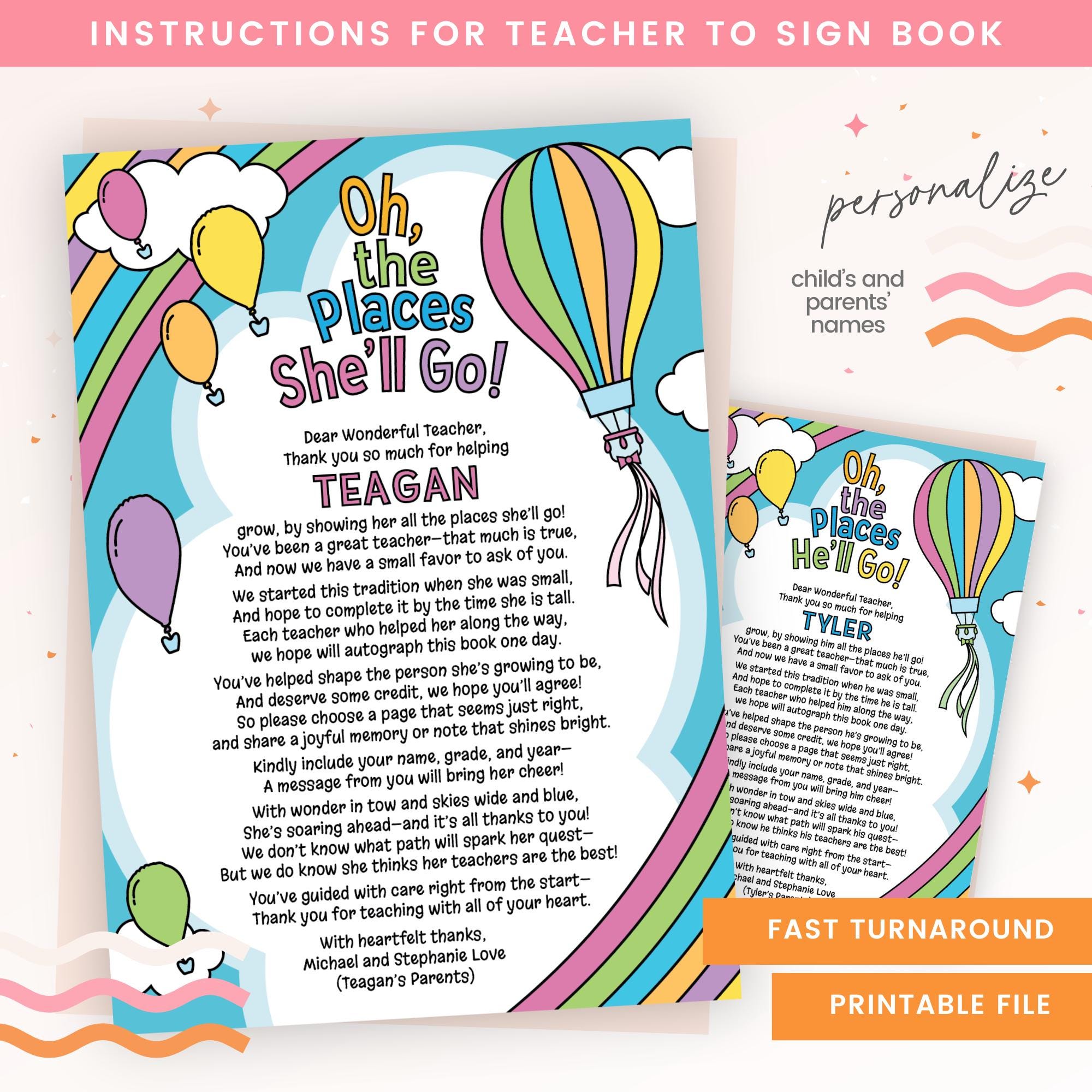 Oh the Places You ll Go Teacher Note Printable Instruction Card for