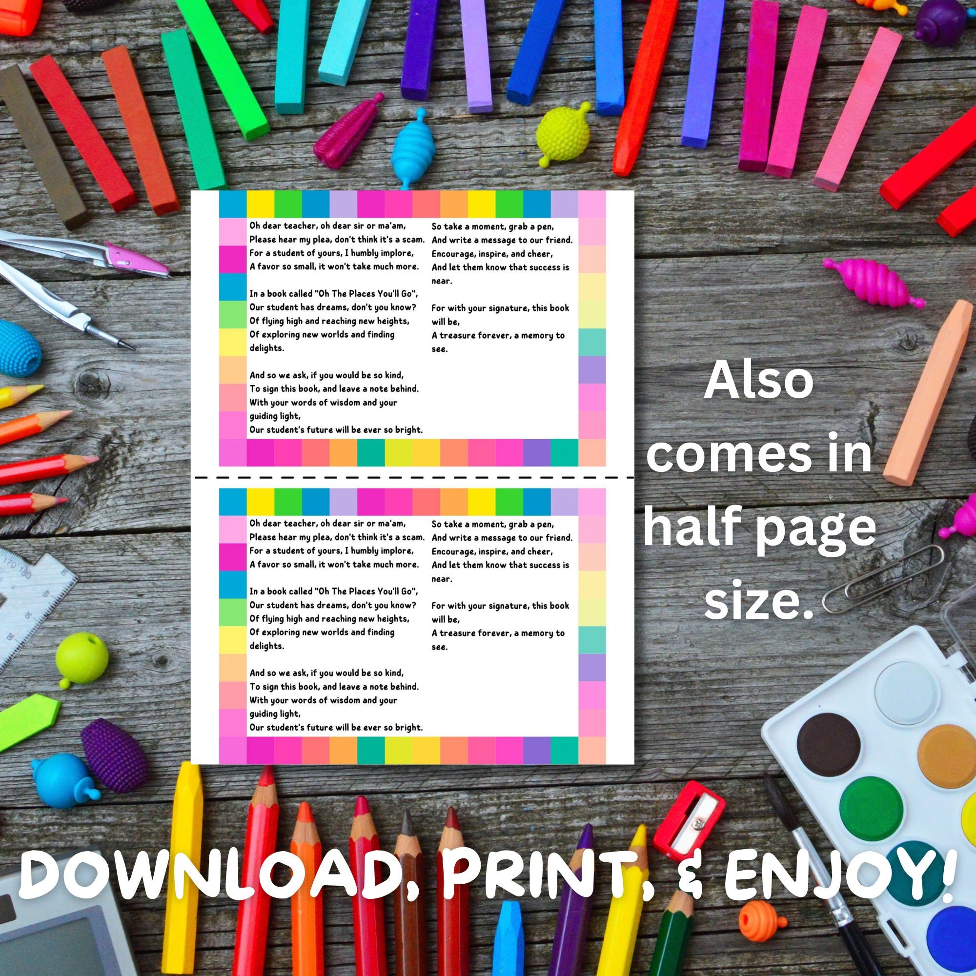 Oh the Places You #39 ll Go Instruction Letter for Teachers to Sign Book