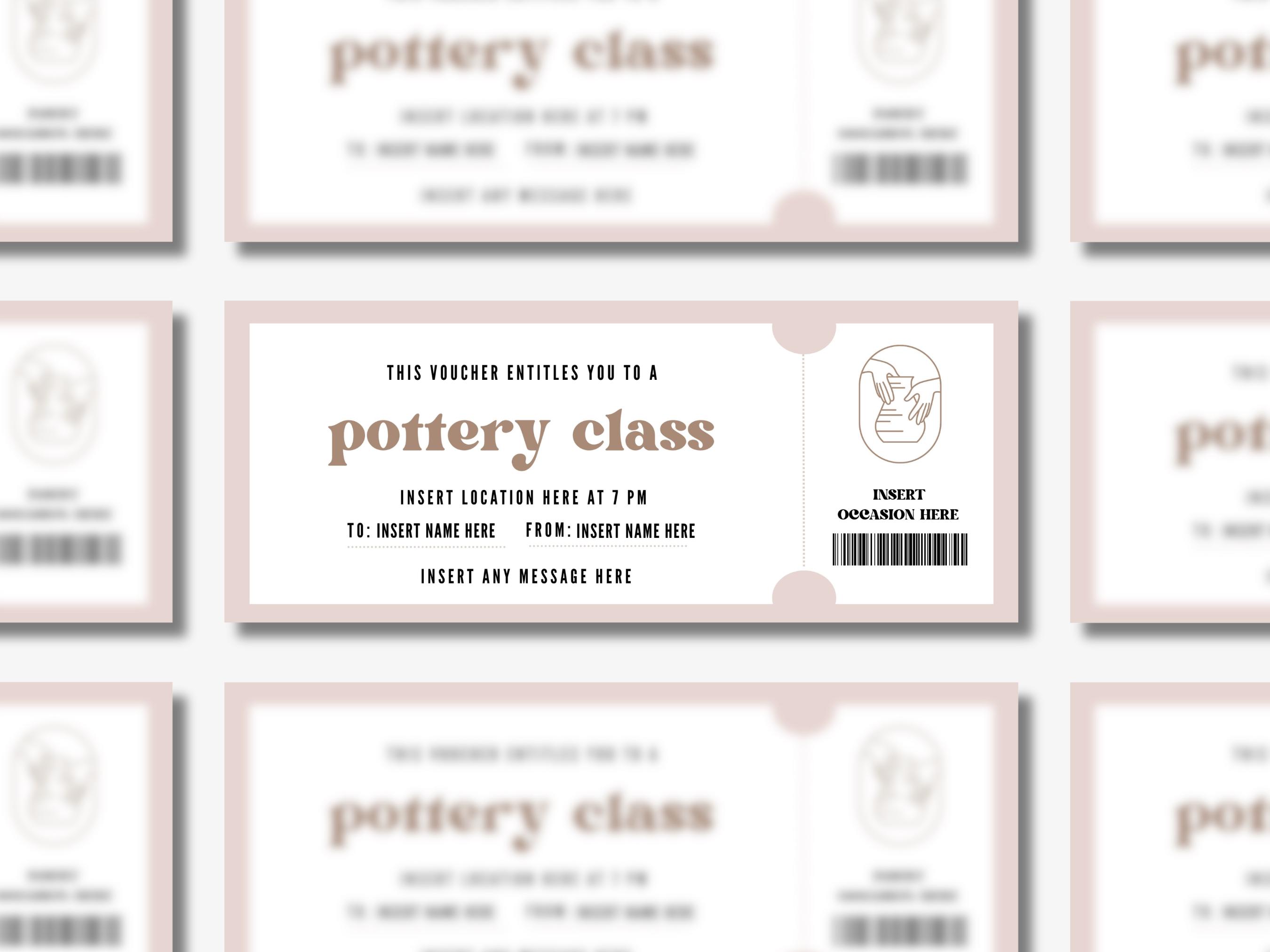 Printable Pottery Class Coupon Editable Pottery Making Lesson Ticket