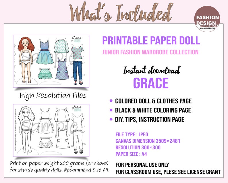 Grace Paper Doll: Printable Coloring Page DIY Fashion (printable Files