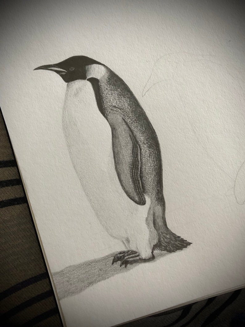 PENGUIN ARTWORK / ANIMAL Drawing Graphite Sketch / Penguin Wall Art