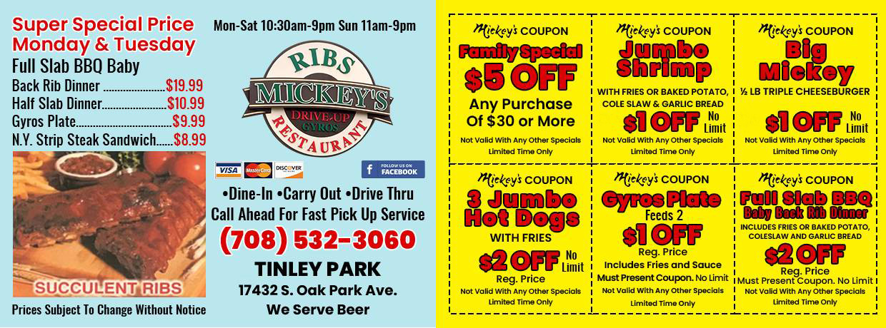 Mickey s Ribs Gyros Tinley Park IL Testimonials Coupons