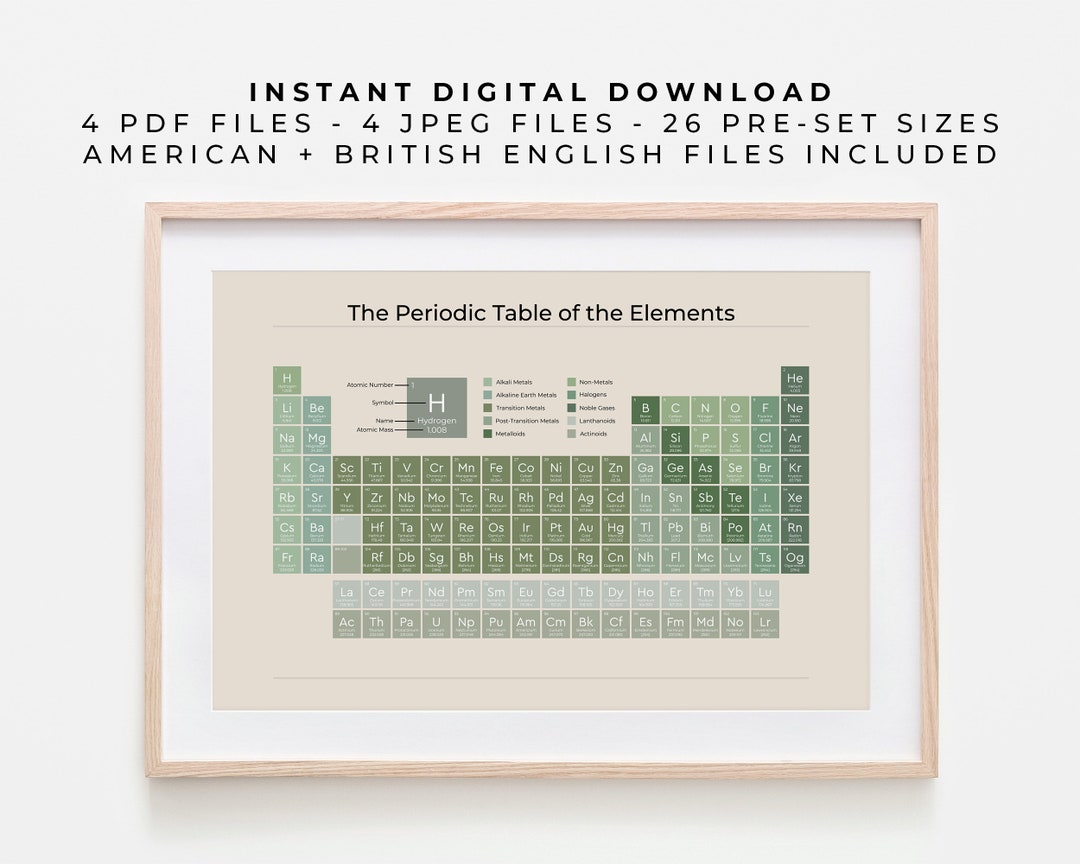 Periodic Table Poster Evergreen on Sand Cute Aesthetic Etsy Canada