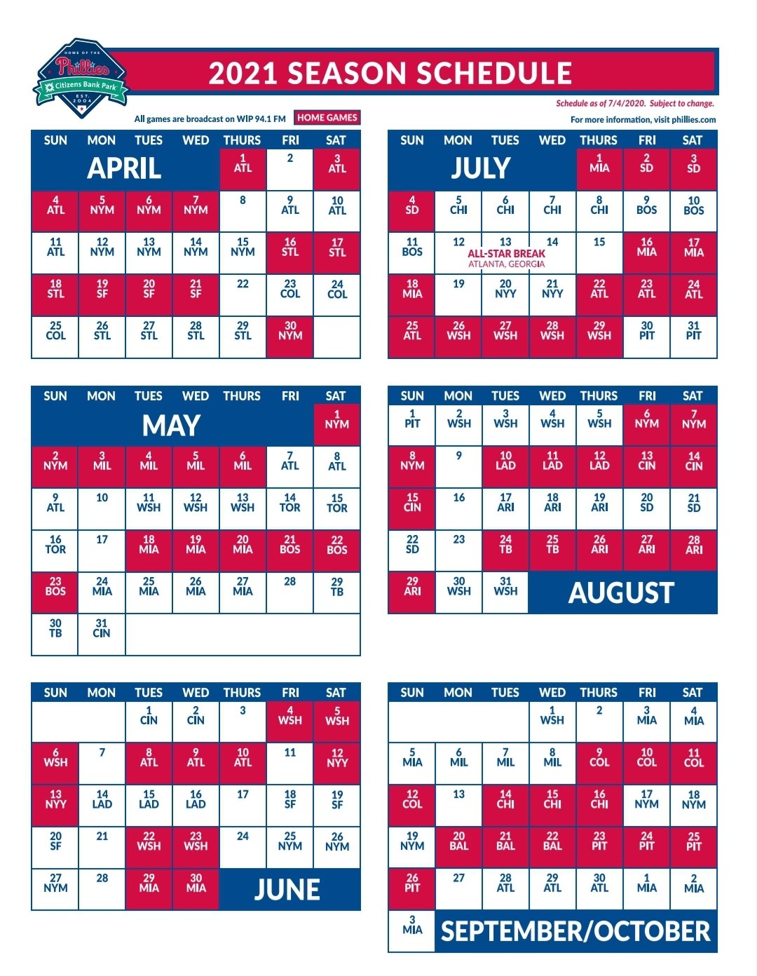 Printable Phillies Schedule 2021 PrintableSchedule net Printable