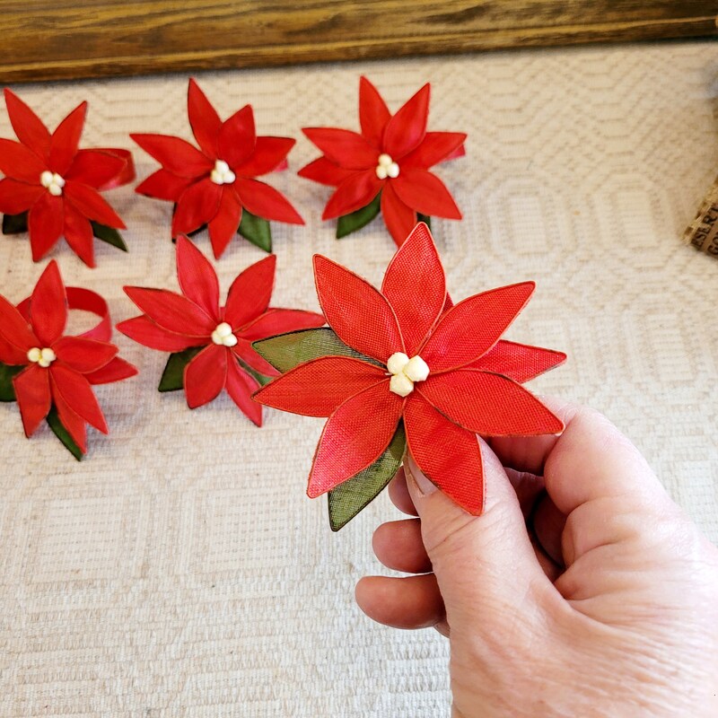 Handmade Christmas Poinsettia Decorative Clothes Pins Set of 8 Shipping