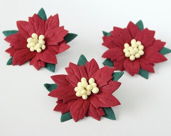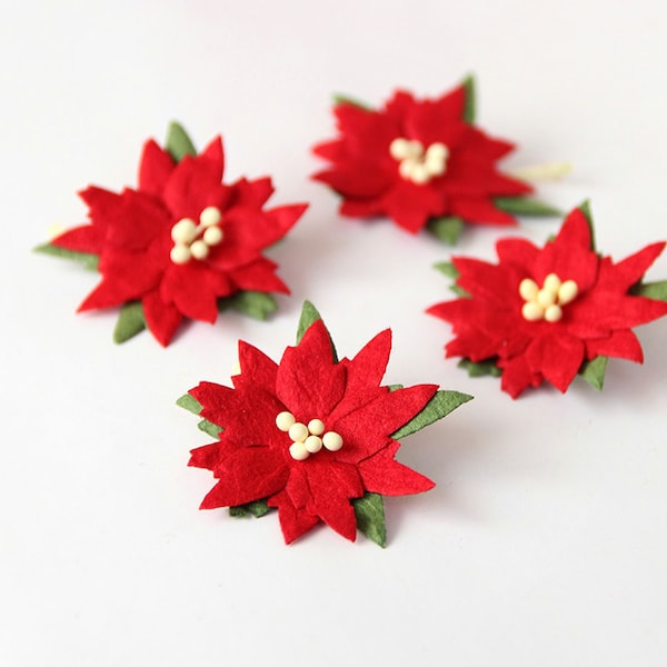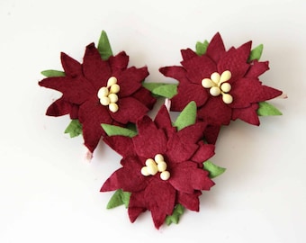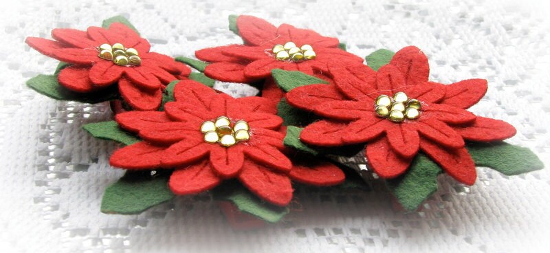 Red Felt Poinsettia Flowers Die Cut Felt Poinsettias Etsy