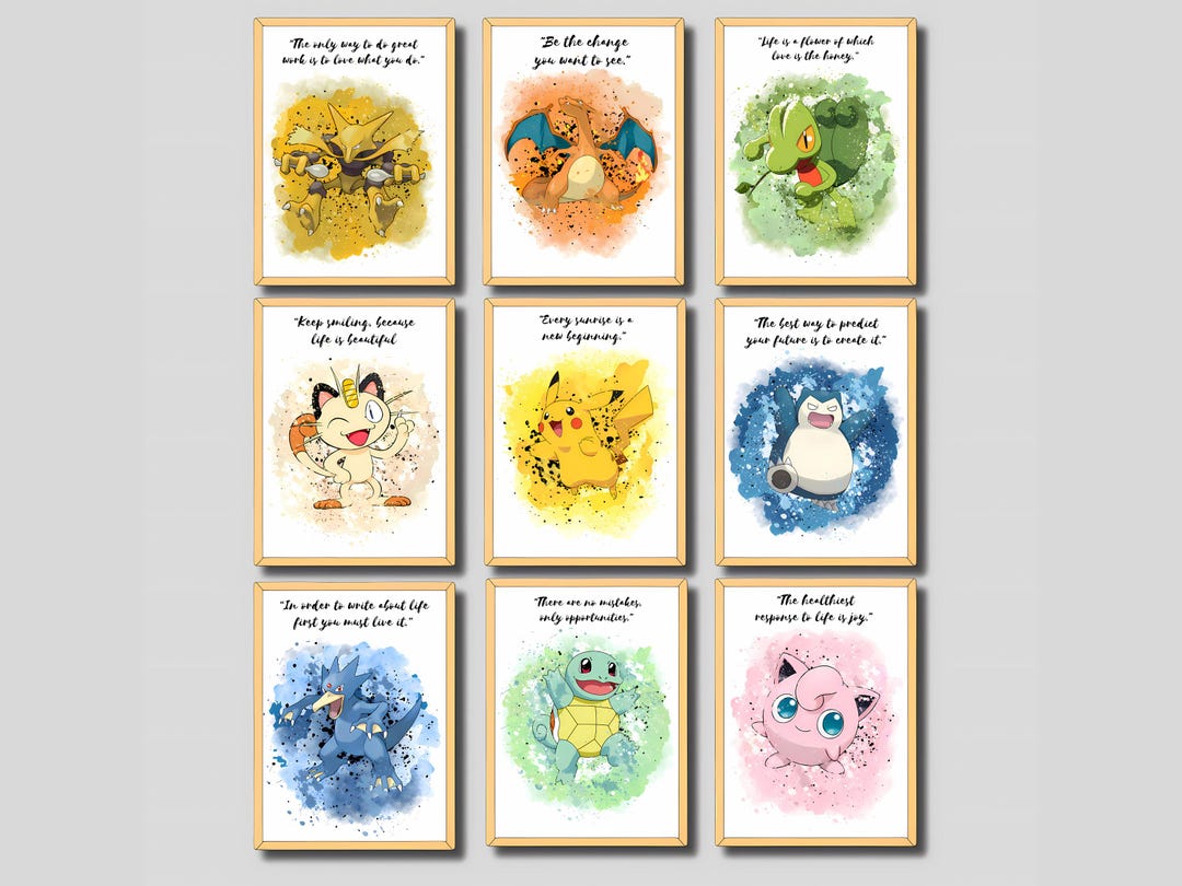 Pokemon Set of 3 Watercolor Print With Quotes Pokemon Printable Poster