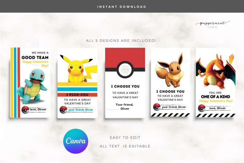 Pokemon Printable Valentines Day Cards Instant Download Etsy