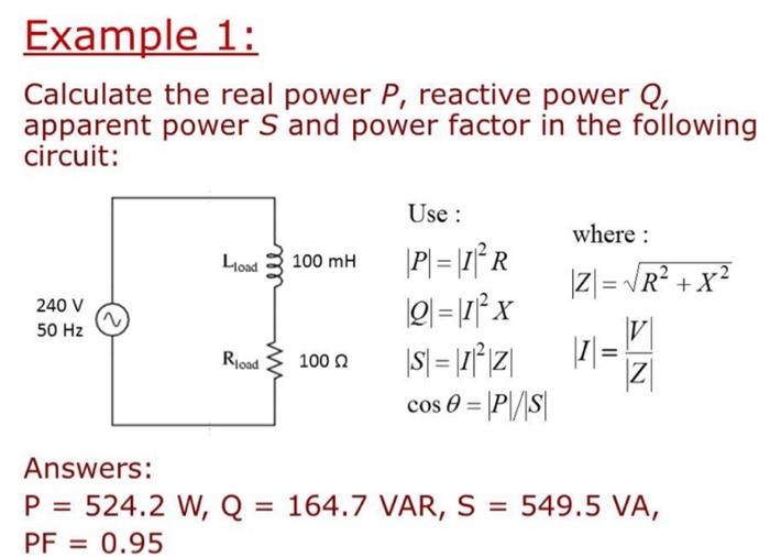 Solved Example 1: Calculate the real power P reactive power Chegg com