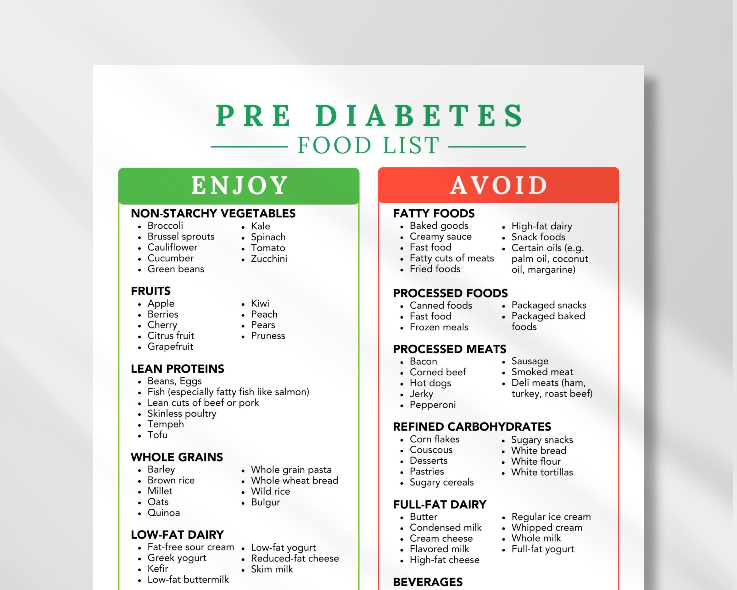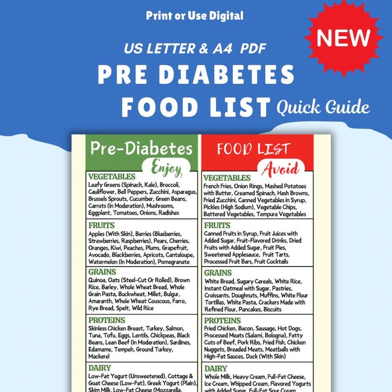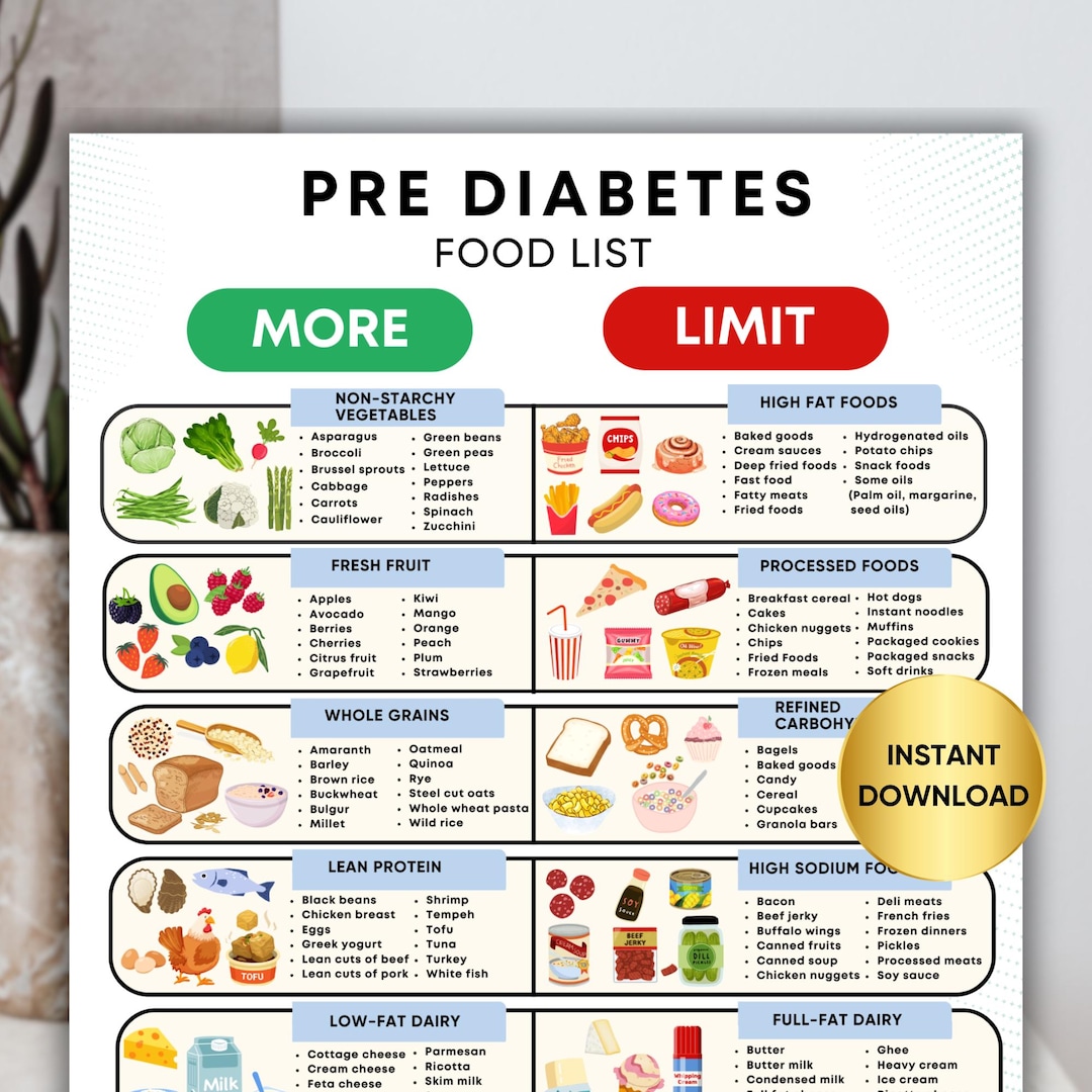 Pre Diabetes Food Poster Prediabetes Diet Plan Chart Printable PDF to